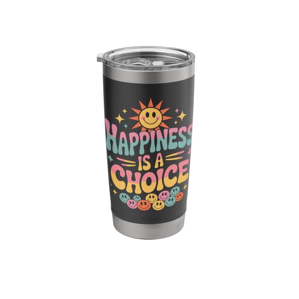 Retro "Happiness Is A Choice" Positive Quote Sun Smile Face Stainless Steel Insulated Tumbler