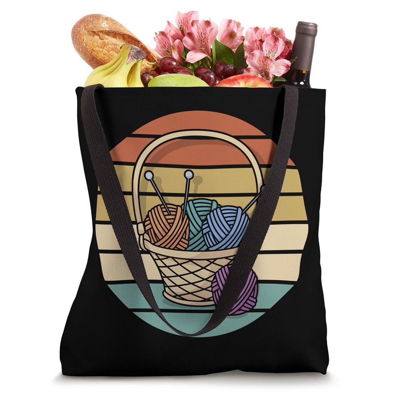 Retro Knitting Design Knitting Needles Wool Basket Tote Bag