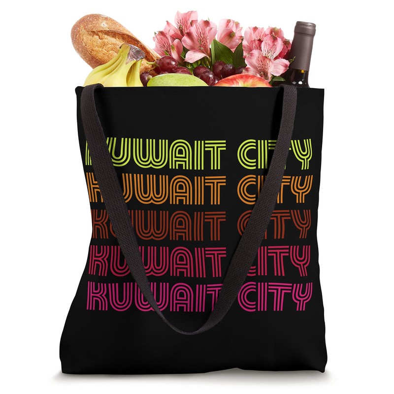 Retro Kuwait City City Inline Font Disco Design Vintage Tote Bag