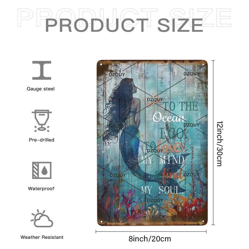 Retro Metal Tin Sign And To The Ocean I Go To Lose My Mind And Find My Soul Signs Mermaid Club Bathroom Kitchen Home Bedroom Art Wall Decoration Plaque Gift 8x12inch
