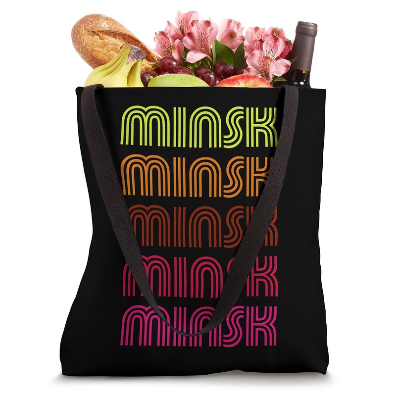 Retro Minsk City Belarus Inline Font Disco Design Vintage Tote Bag