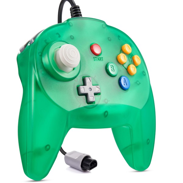 Retro N64 Mini Controller, N64 Wired Remote Bit Game Pad Upgraded Joystick Controller for Classic N64 Video Console Clear Green