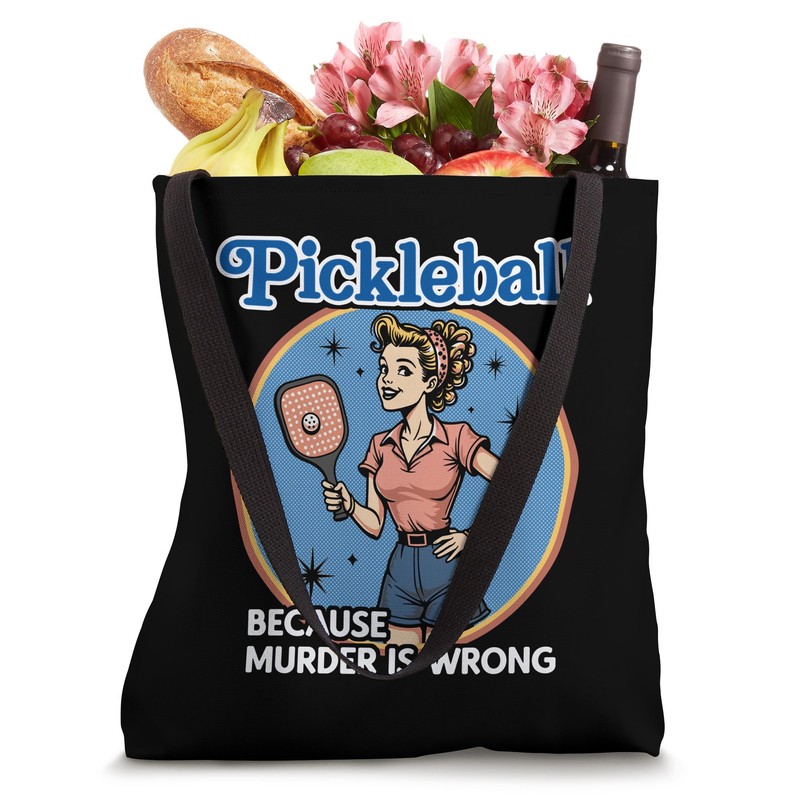 Retro Pickleball Funny Because Murder Is Wrong Design Tote Bag
