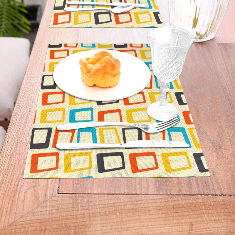 - Retro place mats bright printing design to add more fashion, while also protecting your table. Reusable placemats suitable for daily use, birthday parties, holidays, spring, summer, family dinner, hotel, weddings, outdoor parties and kitchen decor
