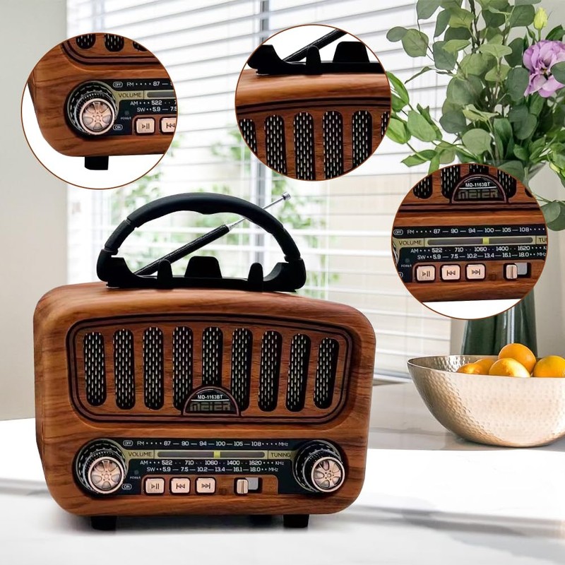 - Clear and loud sound: This vintage radio has a powerful speaker that allows you to expect a loud and crystal clear sound. Whether you are lounging in your room or walking in the garden, with this small radio you can relax.