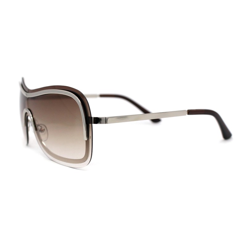 Retro Rimless Oversized Racer Metal Frame Shield Sunglasses Silver - Brown