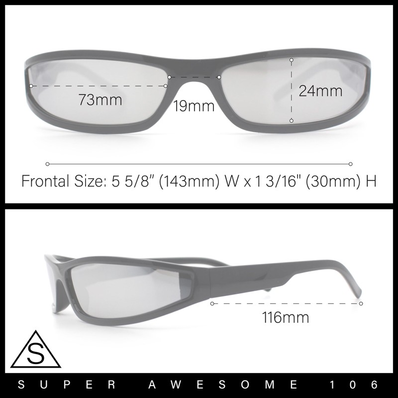 - Lens Width: 73mm / Lens Height: 24mm / Temple Length: 116mm / Bridge Width: 19mm