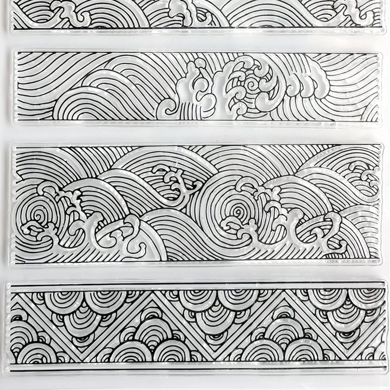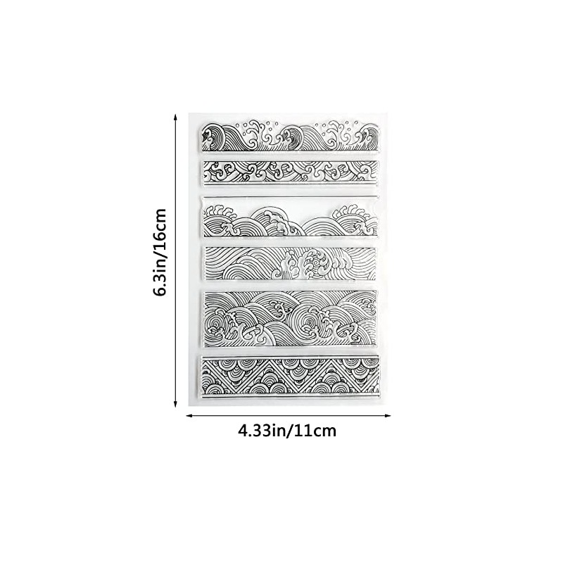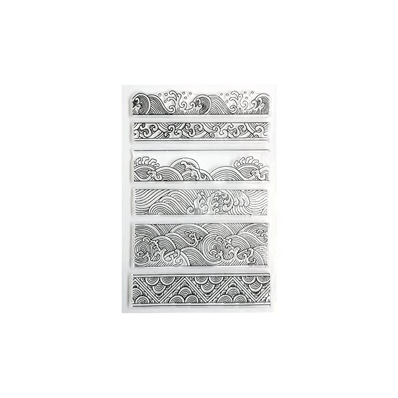 Retro Style Ocean Waves Borders Lines Clouds Clear Stamps - Reusable Rubber Stamp for Card Making, DIY Scrapbooking, Album Decoration, Paper Craft