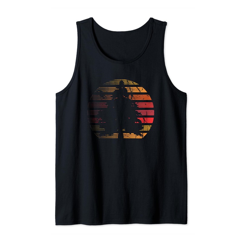 Retro Sun Minimalist Pine Tree Design Graphic Tank Top