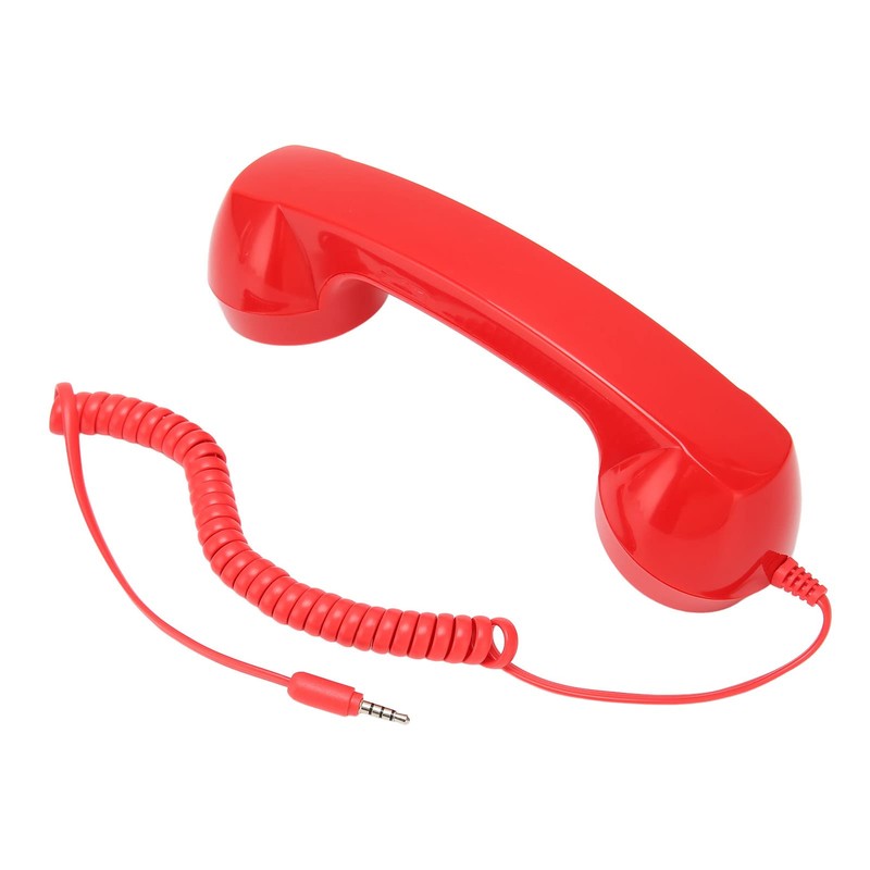 Retro Telephone Handset, 3.5mm Cell Phone Receiver Mic with Volume Control, 9 feet Coiled Cord Microphone for Smartphone (Red)