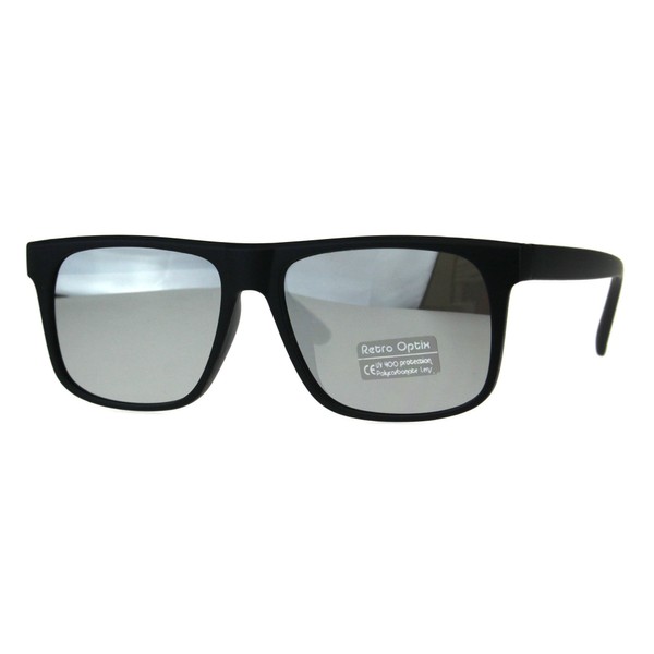 Retro Unisex Sunglasses Simple Matte Black Rectangular Frame Silver Mirror Lens