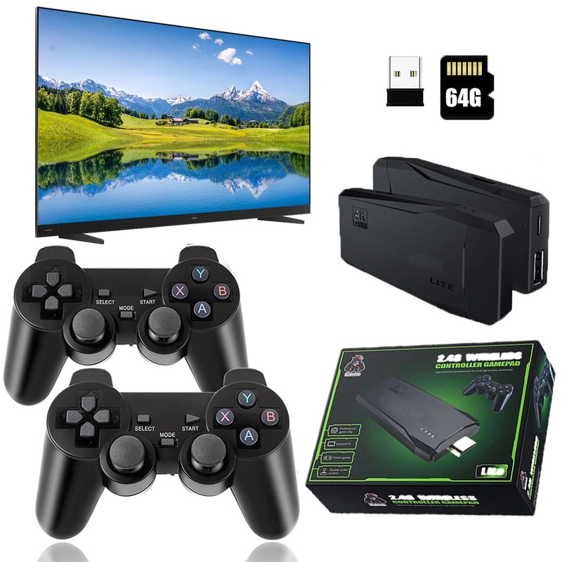 - 【Wireless Retro Gaming Console】Retro Game Console, Nostalgia StickGame,Wireless Retro Play Game Console,Plug and Play Video Game Controller Built in 20000+ Games,4K HDMI Output,9 Classic Emulators,with Dual 2.4G Wireless Controllers(64G);