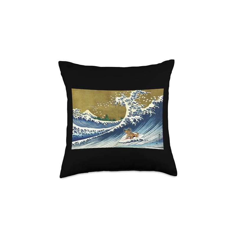 Retro Vintage Surfing a Wave Pet Crested Gecko Lover Throw Pillow
