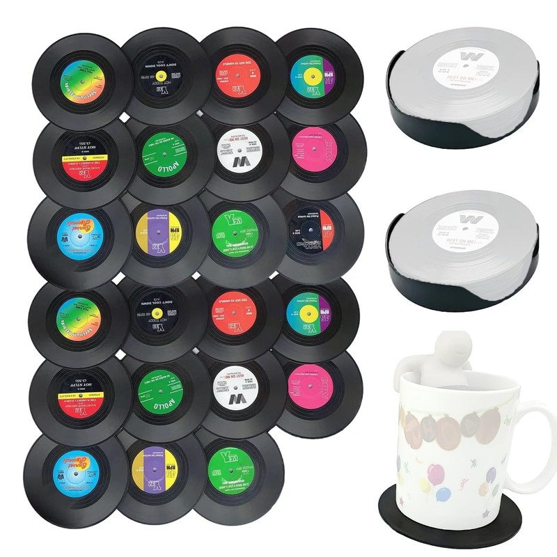 - Retro Design with Modern Functionality: Add a touch of vintage charm to your home with these 24pcs vinyl record coasters, perfect for protecting your tabletops while delighting music lovers.