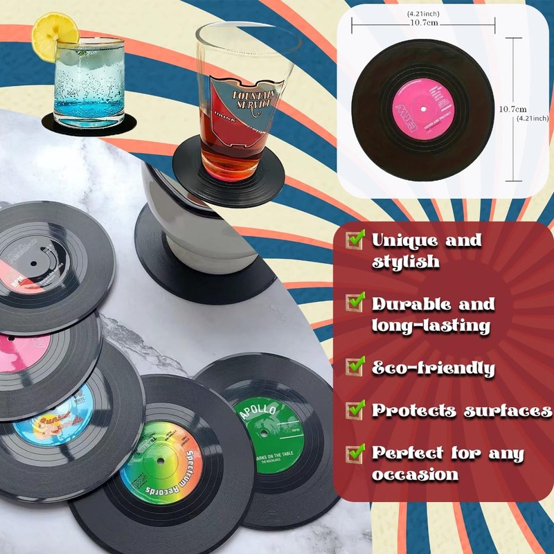 - Perfect Gift for Music Lovers: Ideal for birthdays, housewarming parties, or any occasion, this set of retro vinyl record coasters is a thoughtful and unique gift idea for music enthusiasts.