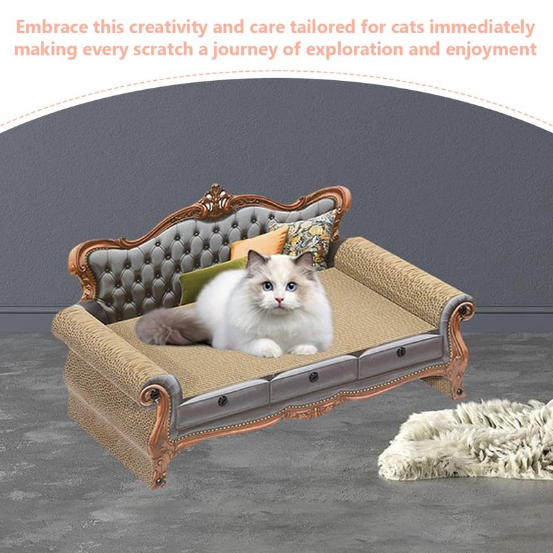 Retro Wooden-Tone Cat Sofa Bed, Durable Cardboard Cats House, Large Scratch & Sleep Cardboard Lounge for Kitty, Stylish Durable Scratcher & Bed Combo