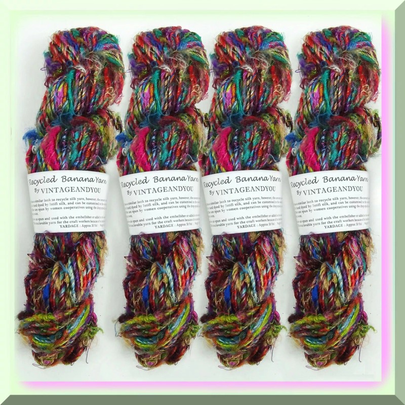 Weight Approx.: 100 Grams/ 1 Skein ==== FEATURES: ===== 1. Refined Aesthetics: Our Recycled Banana Silk Yarn offers a stunning visual appeal, resembling the luxurious texture and appearance of recycled silk yarn. Crafted with meticulous attention to detail, this yarn showcases a refined aesthetic that adds a touch of elegance to any project.
