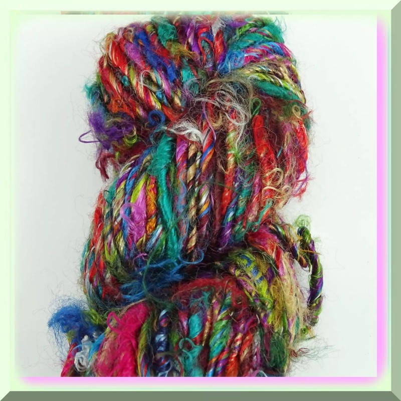 The Recycled Silk Yarn is a dream come true for small-scale projects such as knitting, crocheting, or weaving. Its softness and shine make it a joy to work with, knitting up like a luxurious bulky yarn. From hats to shawls, scarves to bags, the possibilities are endless.