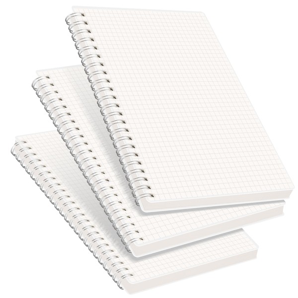 RETTACY 3 Pack Squared Spiral Notebook A5 Graph Grid Wirebound Journal with 480 Pages, 100gsm Thick Squared Paper, DIY Clear Cover, 14.5 x 21cm