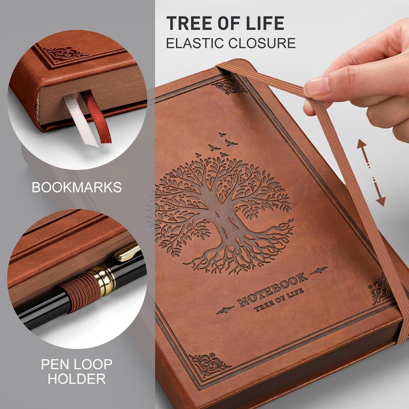 - Vintage Design PU Leather Cover: The cover is uniquely embossed to create a raised texture that gives the inspirational tree motif an authentic touch, and its tough hardback cover not only exudes stylish glamour, but also provides sturdy protection for the pristine pages, ensuring the most comfortable and luxurious writing experience.