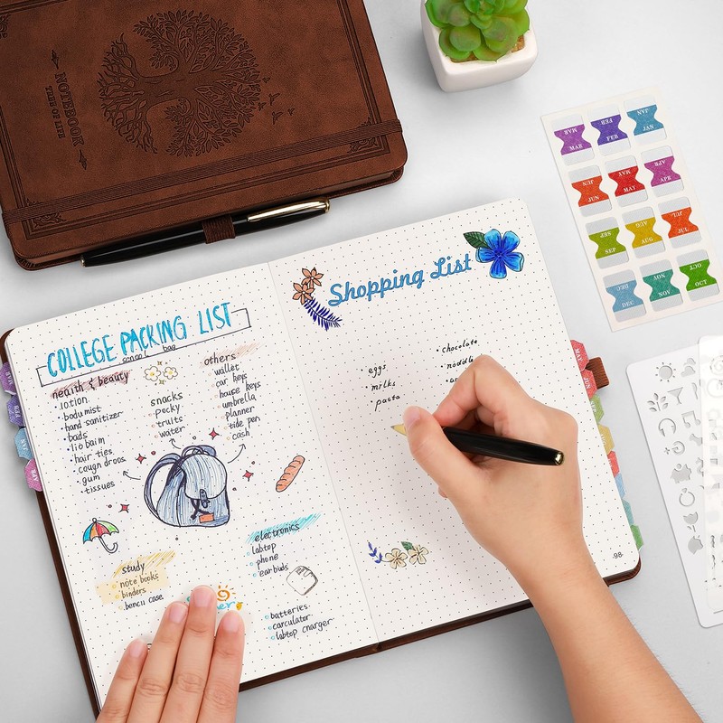 - 240 page dotted notebook: With its 5 x 5 mm dot grid paper, this 120 sheets/240 page notebook serves as a haven to capture the limitless stream of your volatile ruminations. The tasteful brown coating adorns the edge and gives this notebook an exquisite charm.