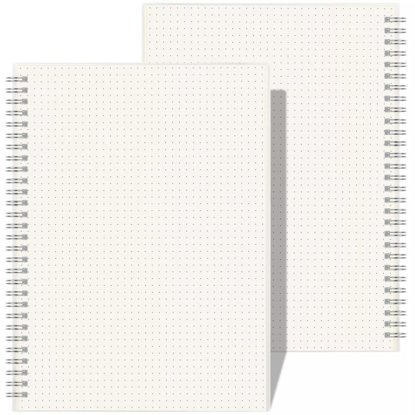 RETTACY Bullet Dotted Journal 2-Pack - B5 Dotted Grid Spiral Notebook with 160 Pages per Pack, 100 GSM Premium Acid-Free Paper, Bullet Journaling, Sketching, Twin-Wire Spiral Binding, 7.3" × 10"