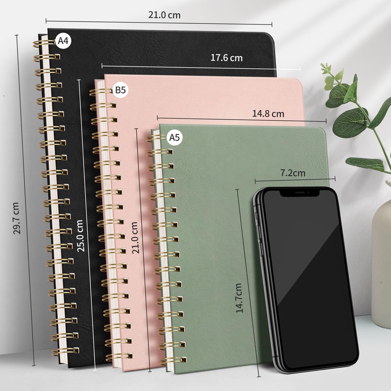 - Spiral bound leather case: provides optimal protection for your notes and guarantees durability. The 360° rotation and flat design allow easy writing with both hands, ideal for everyday use.