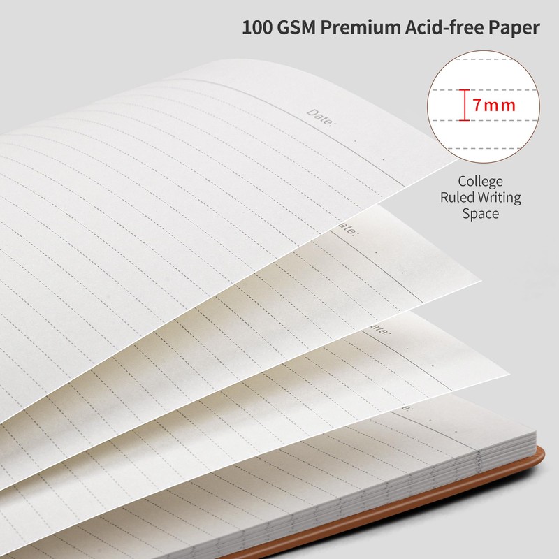 • Sturdy PU Leather B5 Notebook Cover - The premium leather hardcover makes the college-ruled writing journal more durable and touched comfortably, it can protect the pages inside for years and provide a comfortable writing surface.