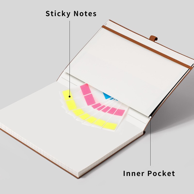 • Humanized Design Lined B5 Notebook - Each Journal comes with an Elastic Closure,1 Pen Holder Loop,2 Bookmarks,1 Back Pocket, 1 Free Sticky Notes Divider for each book, - Unique 180° Lay-Flat Design.