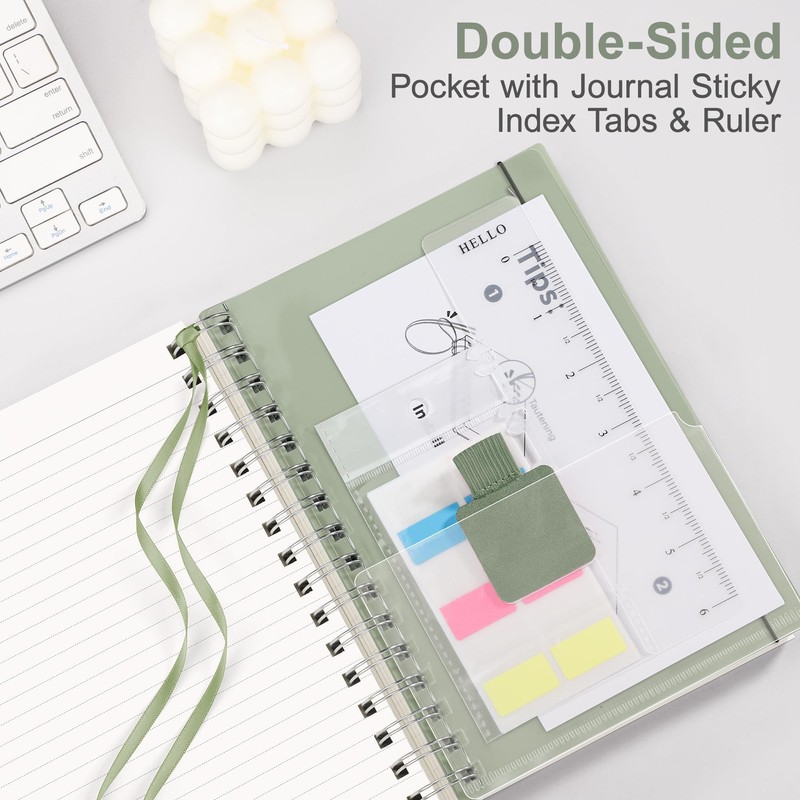 - COLLEGE RULED NOTEBOOK: RETTACY College Ruled Notebook comes in a A5 (5.7'' × 8.2'') size, 150 Sheets/300 Pages, 7 mm college ruled writing space, Flexible Plastic Cover, 100 GSM Thick Acid-free Paper, Pen Holder, Lightweight Ruler, Bookmark, Sticky Index Tabs, Inner Pocket