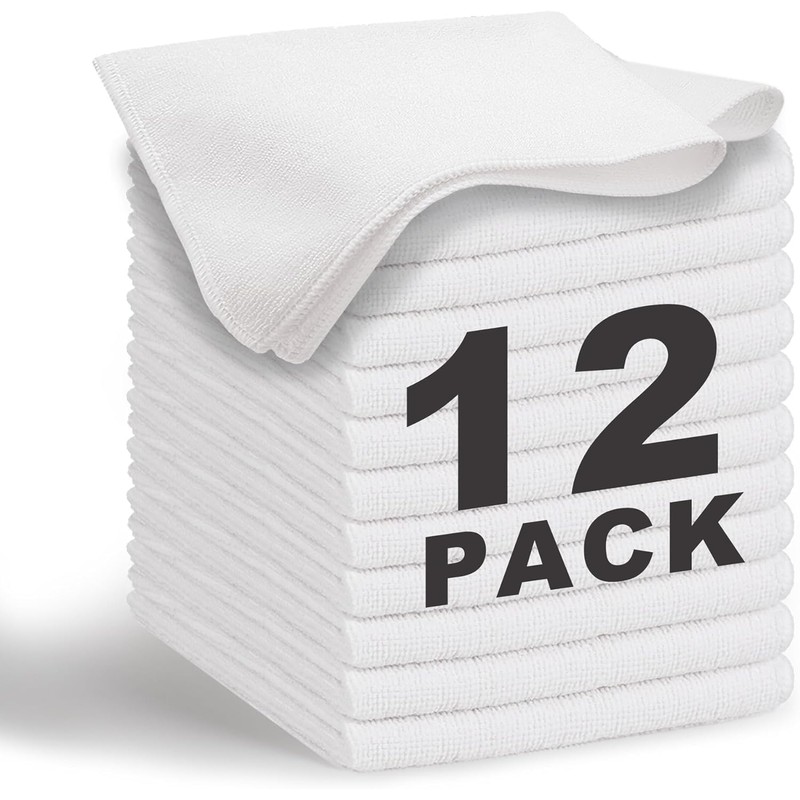 REUCLOTHIM Microfiber Cleaning Cloth 12 Pack Cleaning Towels,13"x13" Highly Absorbent Cleaning Supplies,Lint-Free Dusting Cloths for Kitchen, Dish,Window,Household Cleaning.(White)
