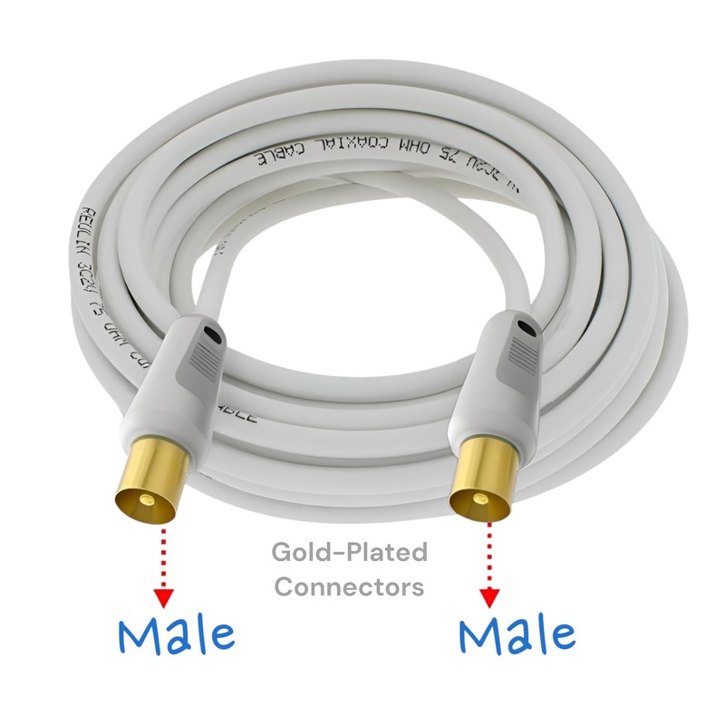Reulin TV Aerial Cable 1M Long Male to Male Antenna Coaxial Wire 1 M Slim 3C2V RF Coax Lead Compatible with Televison Signal Amplifiers Y Splitter Wall Socket Booster Sky Box Gold Plated 1 Metre