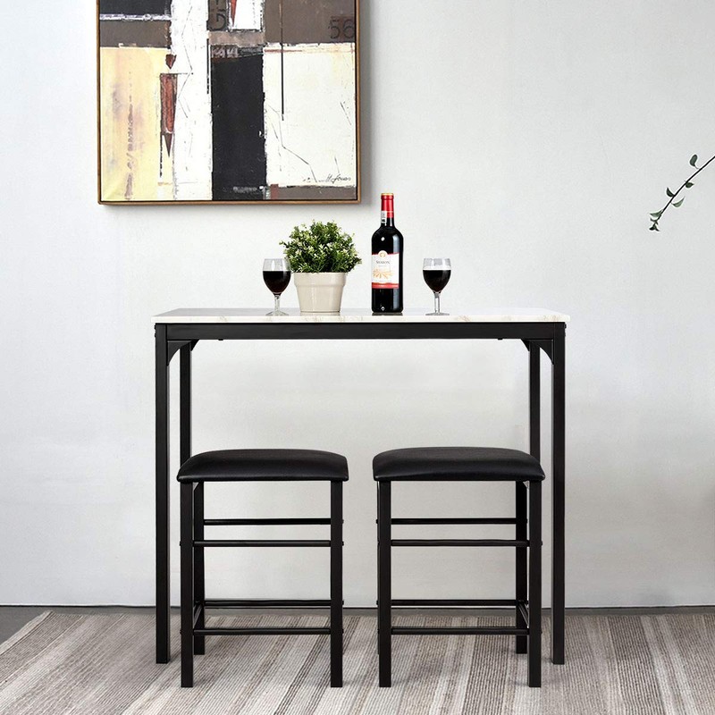 - 【Stylish and Modern Style】 :The dining table has a marble top and black metal legs. The stools are sleek leather with a black metal frame. It's very modern.The edge of set of table and chair and line are straight and fluent, added chic and elegant feeling.Therefore, it is very suitable for any decoration style in your home.