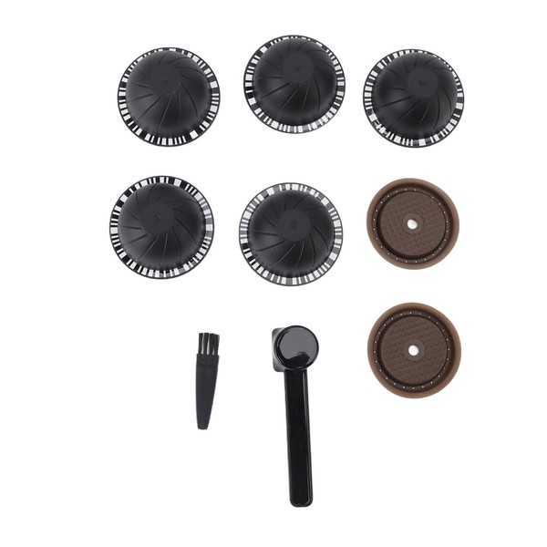 1、Efficient: Perfect helper for refilling coffee pods. Give you a new and great experience of DIY your own coffee. Pods refill kit is specially designed for VertuoLine capsules and helping refill coffee pod more quickly but no messy. Provides convenience and high efficiency for your coffee daily. 2、Save Your Time: Each DIY pod is quick to make. You can make coffee pods at your leisure time by using capsule refills kit. And before go out in the morning, take a DIY coffee pod and make a tasty cup of coffee in a few minutes. Eco friendly, economic and cost saving. 3、Easy to Use: Put the empty capsule into the holder, add ground coffee (please don't overfill), brush away the remaining coffee grounds in the capsule edge, and then cover the silicone disc, and press it lightly for its best sealing performance. 4、Safe: Our silicone cover is safe, durable, easy to clean, ensuring a long lasting coffee experience. Scoop for filling and pressing grinds more conveniently and faster. Brush for cleaning effectively. 5、Reusable Capsule Refill Kit: Reusable capsule kit comes with 2pcs reusable capsule lid, 5pcs empty pods, a scoop and a cleaning brush.