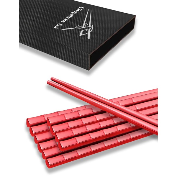 Reusable Chopsticks 5PC - Dishwasher Safe Non-slip Chinese Japanese Style Chopsticks Set (Red)