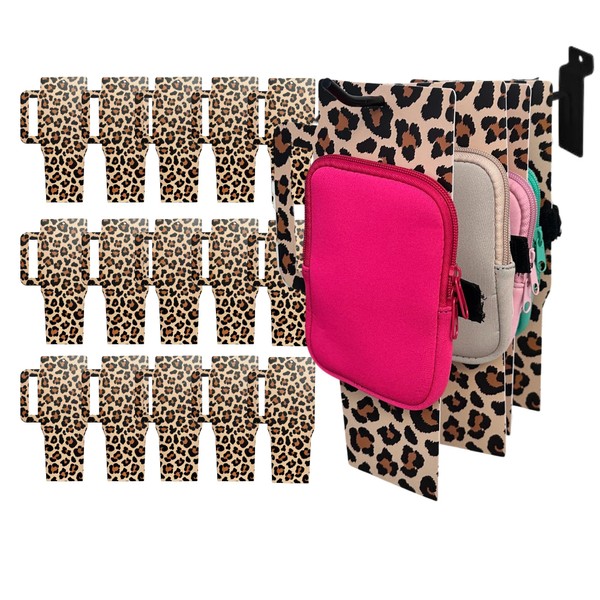 Reusable Display Holders in 40 oz. Tumbler with Handle Shape | 15 pk Leopard for Cup Belt Bags Pouch with Strap Mini Bag Water Bottle Pouch for Boutique Owners and Resellers 10.6 x 5.75”
