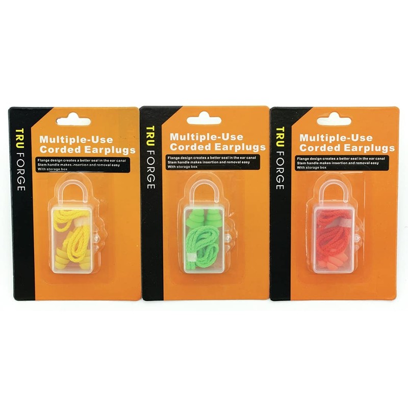 Reusable Ear Plugs with Cord and Storage Case. Flange Design Creates a Better Seal in the Ear Canal.