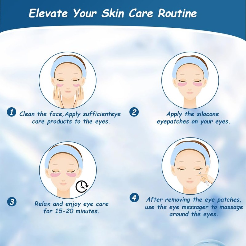 3: SKINCARE BENEFITS: The silicone eye patches lock in moisture around the eyes, reducing fine lines and wrinkles, and can be used with your favorite eye cream or serum. The included eye massager soothes the eye area, reduces puffiness and fatigue, and enhances the absorption of eye cream or serum, enhance your skin care experience.