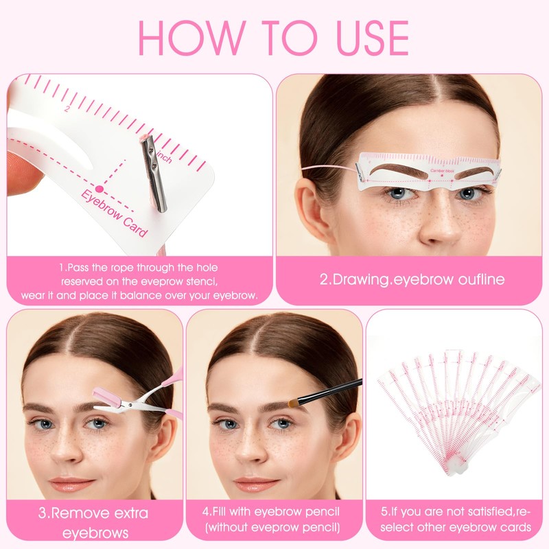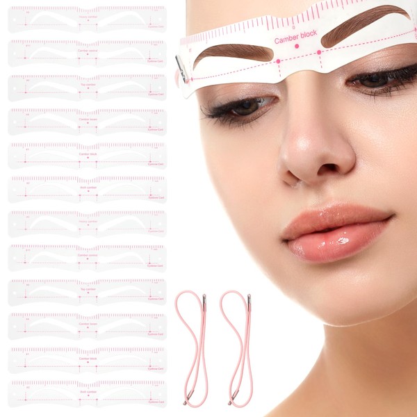 Packing list: 12pcs reusable eyebrow templates + 2pcs eyebrow elastic bands