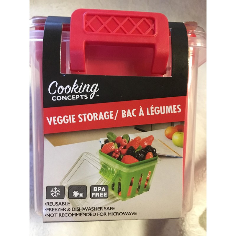 Keep your fruits and veggies fresh longer! Each veggie storage container has a slotted colorful inner basket that allows the fruits and veggies to drain excess water. Plus, snap-lock lids lock in the freshness. A must-have storage container for caterers, restaurants, event planners, banquet facilities, and home kitchens. Containers are 4.125x4.375-in. Cooking Concepts Plastic Veggie Storage Containers assorted among the 4 colors shown.