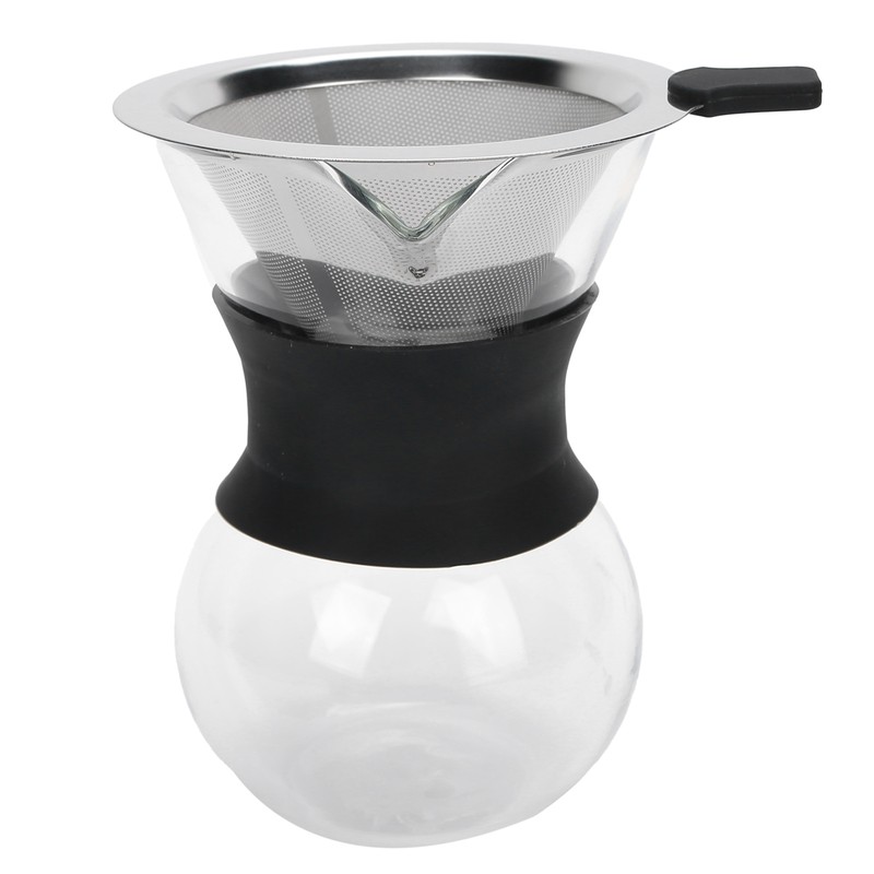 Reusable Glass Coffee Pot with Stainless Steel Filter Manual Drip Coffee Make...