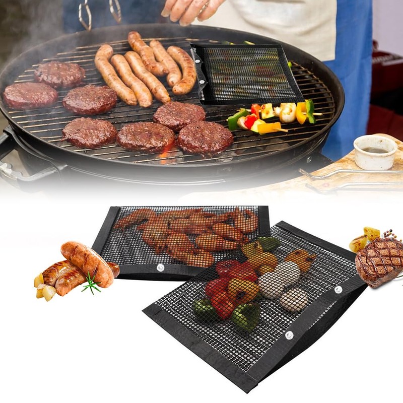 - Idea Present: Nonstick BBQ and baking bags, mesh bbq bags for grill more than bbq cooking mats for grill. This barbecue bags was created for all grilling enthusiasts, novices who like grilling their favorite foods. BBQ mesh bags for gas grill reusable, the good present for any barbecue lover in your life