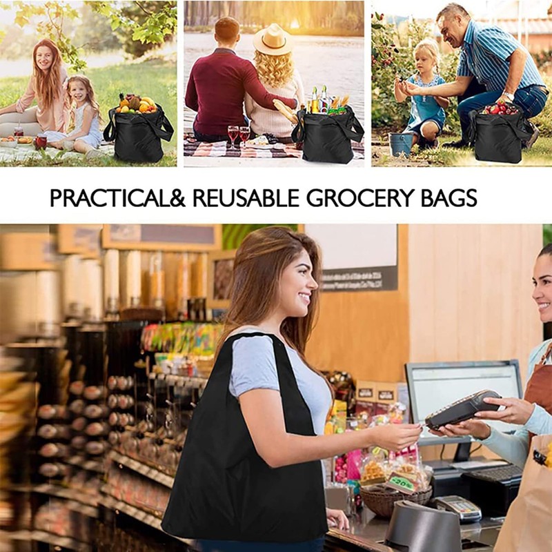 - Reusable grocery bags can be easily packaged into a small roll, which hardly occupies any space, and can be easily placed in backpacks, wallets, pockets or glove boxes of cars.