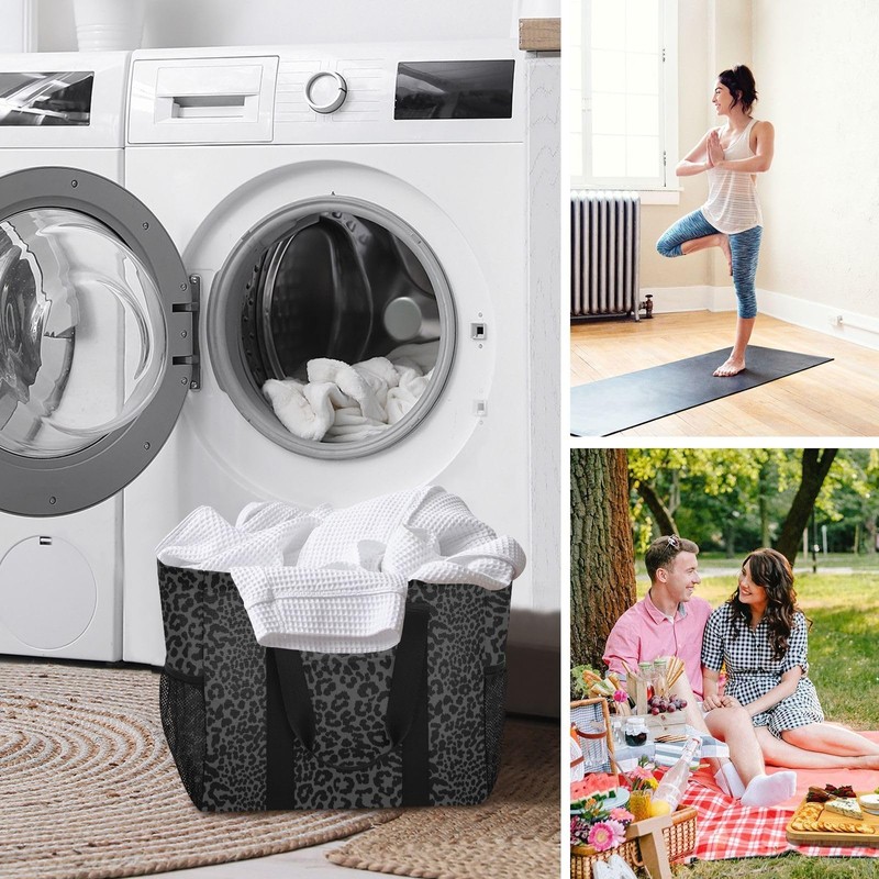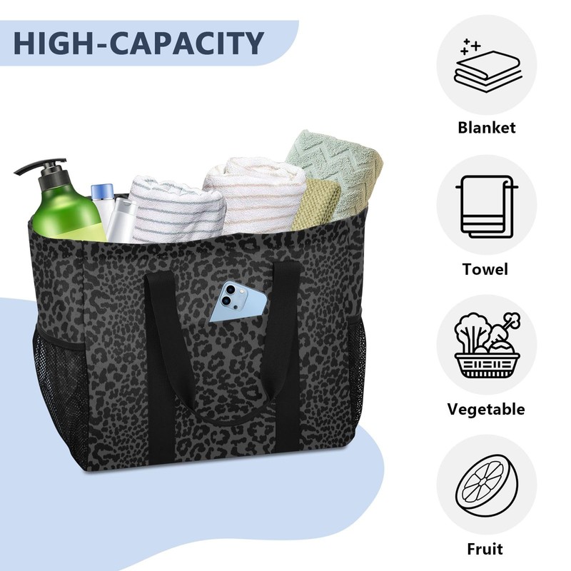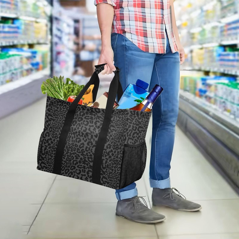 Reusable Grocery Bags Tote Shopping Bags Beach Bag Waterproof Gray Leopard Ch...