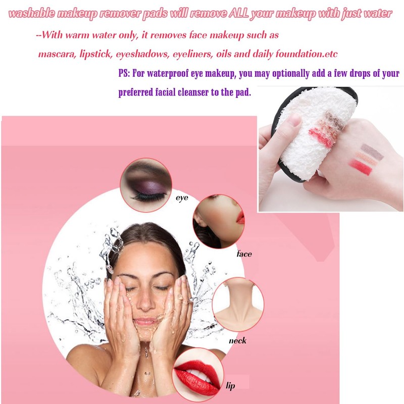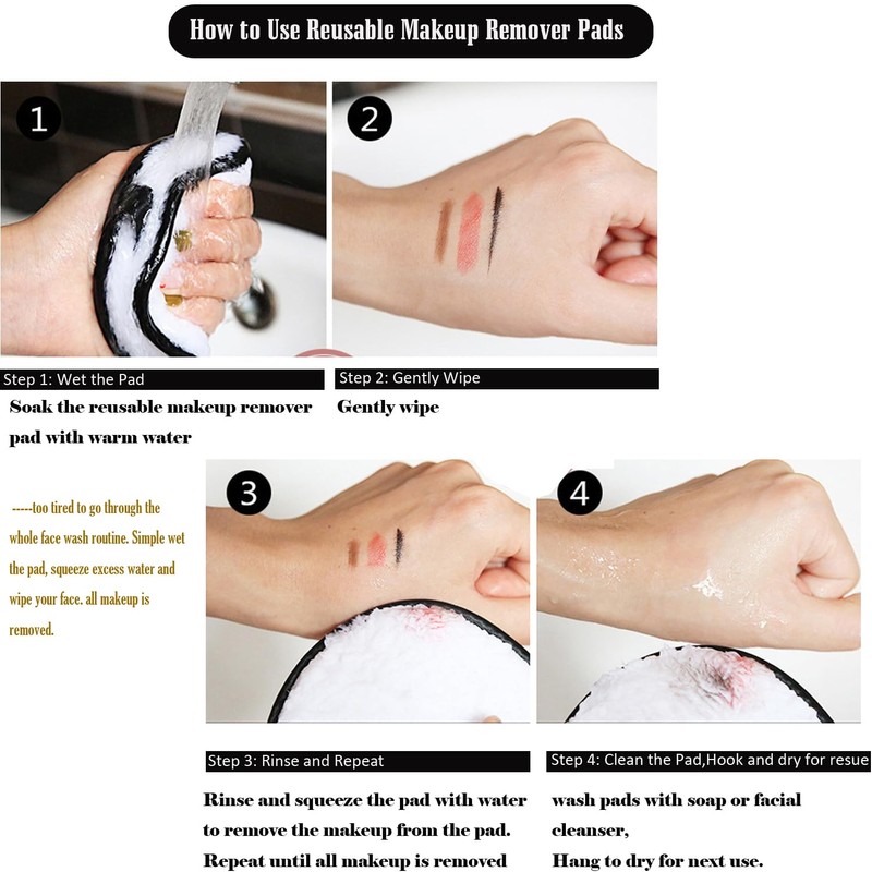 - MAKEUP REMOVAL: Brown & Black reusable meke up remover round pads are designed for light makeup removal, with water can be used for mascara, shadow, lipstick, foundation, for heavy makeup removal please use it with makeup cleansing water/oil