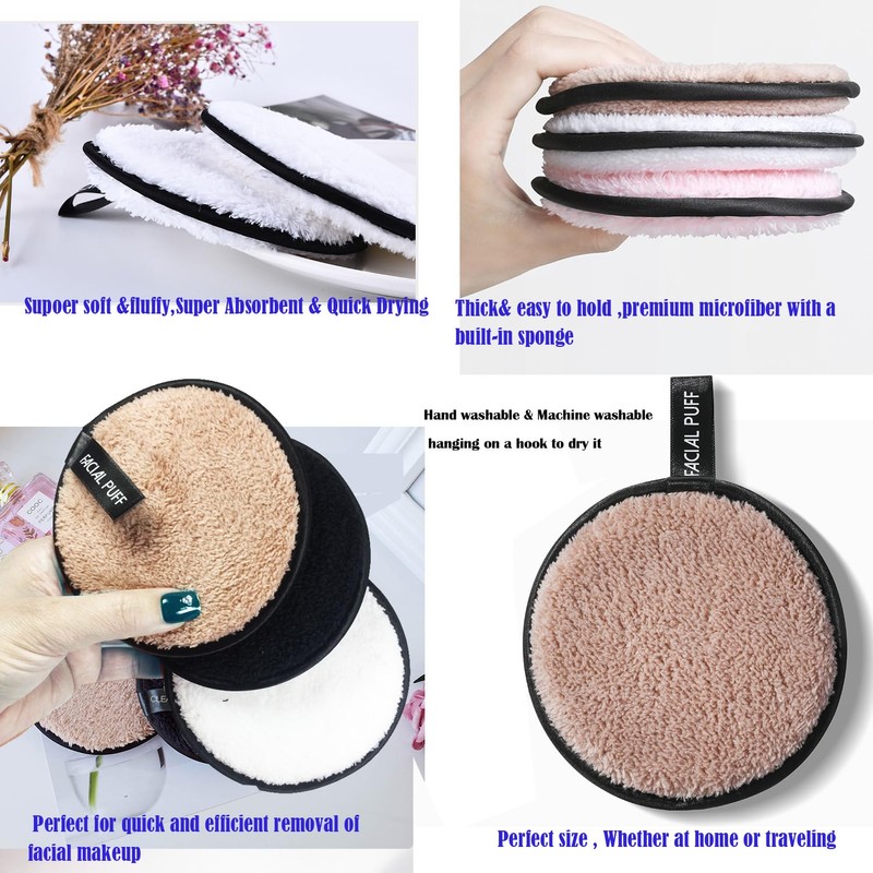 - MICROFIBER + Sponge: 6PCS (2 Size ; 4.5''x3 3.1''x3) Reusable cotton rounds are specially designed with high-quality microfibers and built-in sponge, supper soft, durable and efficient, definitely works for sensitive skin, with the support of sponge, these will never lose shape