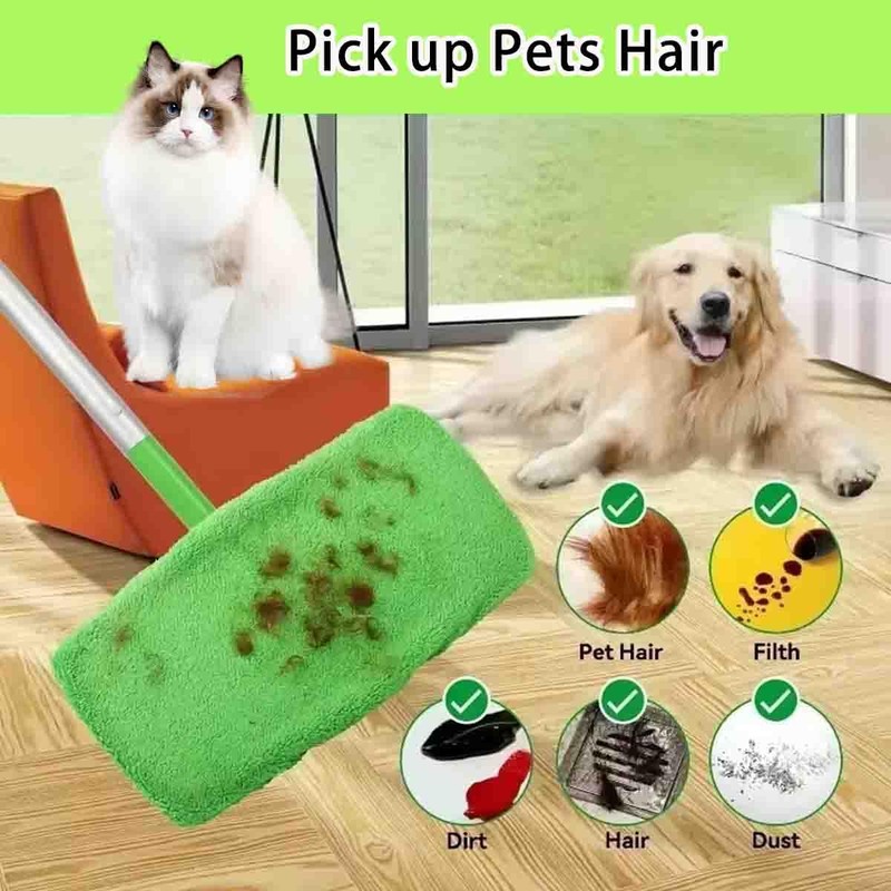 - Cleaning: The dry replacement mop pads can be hand washed, machine washed, reused, and very durable. It can absorb dust, hair, and pet hair very well,especially for families with pets at home, can be dry wiped, wet wiped