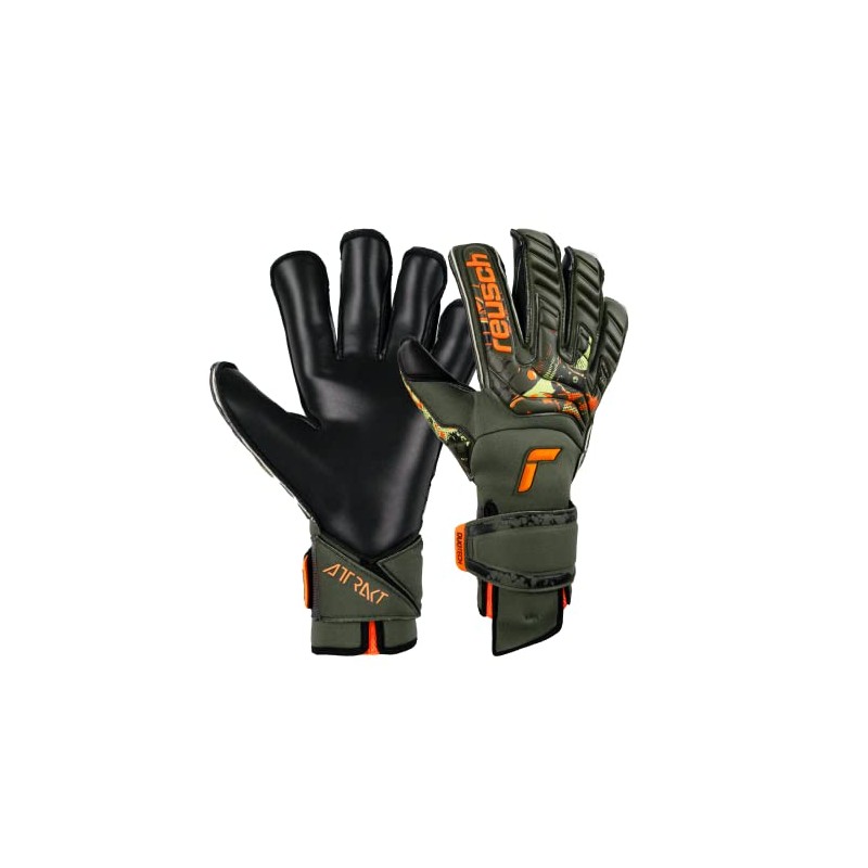 Reusch Attrakt Duo Evolution AdaptiveFlex Goalkeeper Gloves, Desert Green/Shocking Orange/Black, Size 7