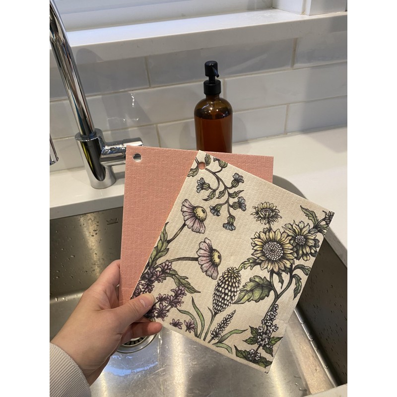 Reuseable Multi-Purpose Cloths Set of 2 with 1 Hook, biodegrable, compostable Used for Cleaning Surfaces, for Kitchen, Bathroom, Office (Flower)