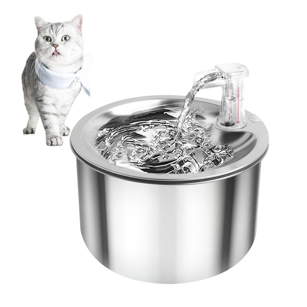 REUset Cat Drinking Fountains - Stainless Steel Cat Fountain Water Bowl, 304 Stainless Steel Pet Water Dispenser Smart Constant Temperature for Cats, Dogs, Other Pets